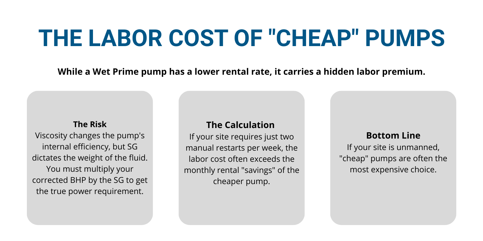 Rental decisions are rarely about pump physics alone. They are about total cost under uncertainty: downtime, callouts, fuel, and repair exposure.